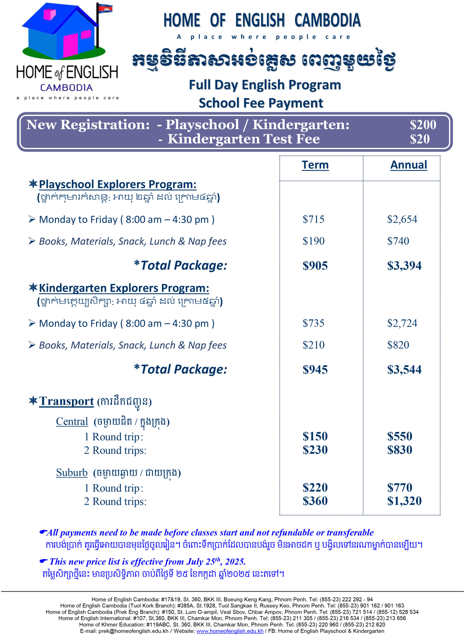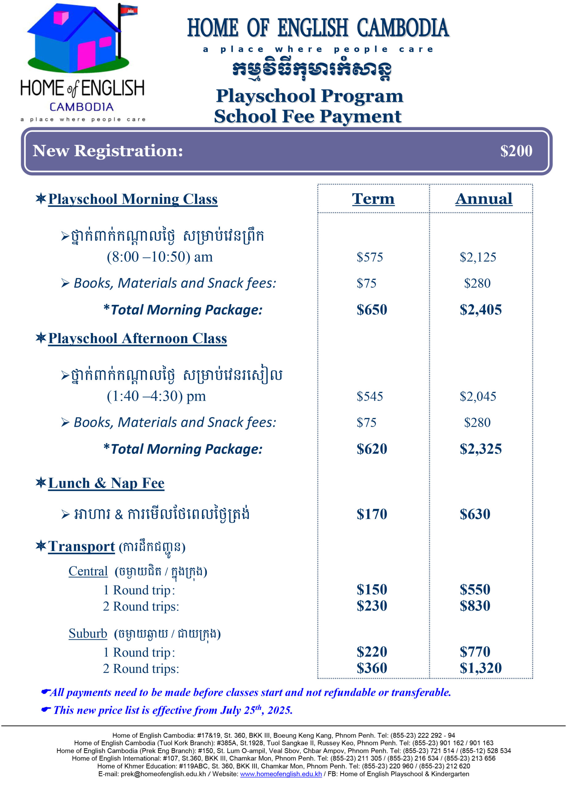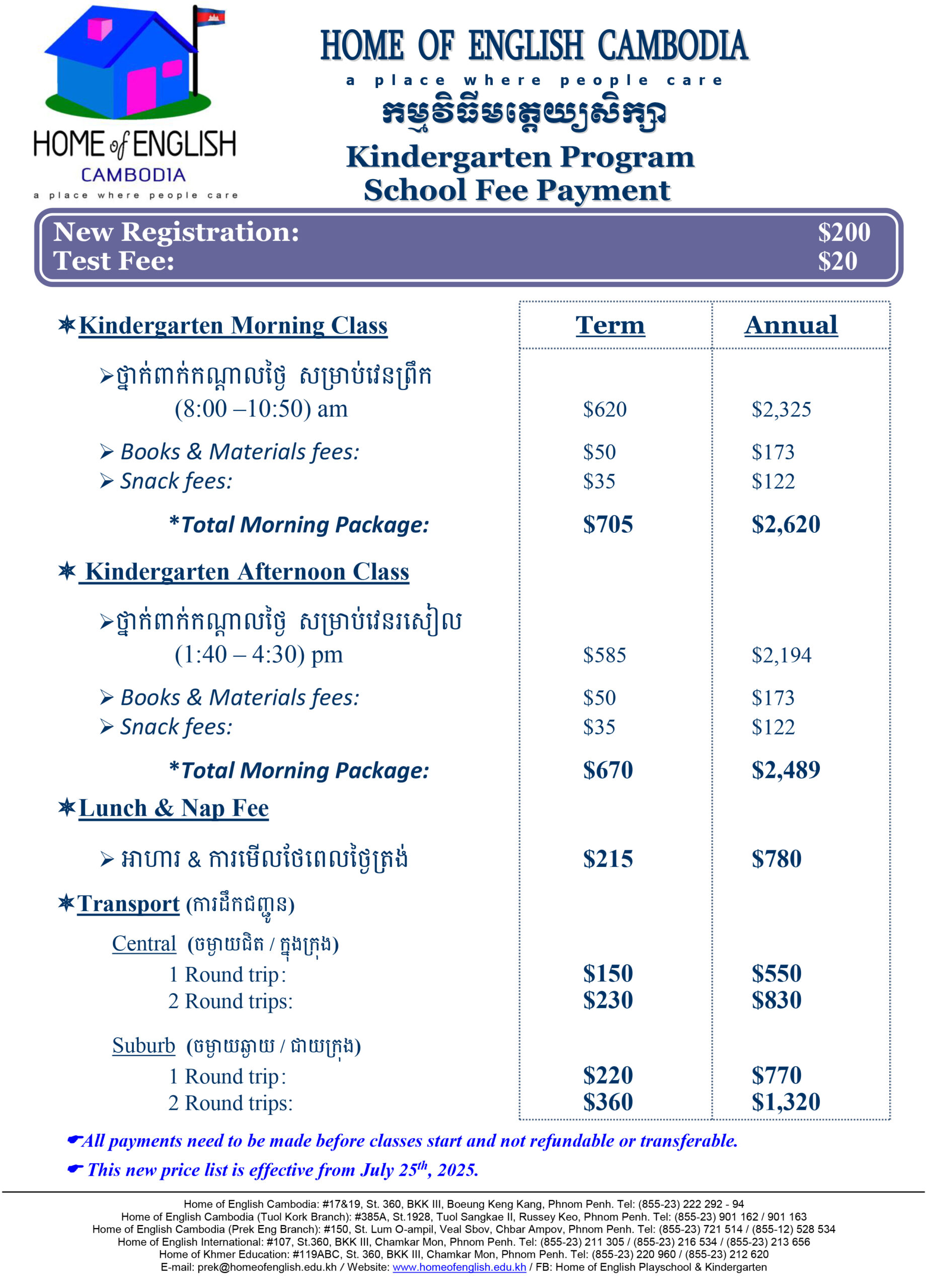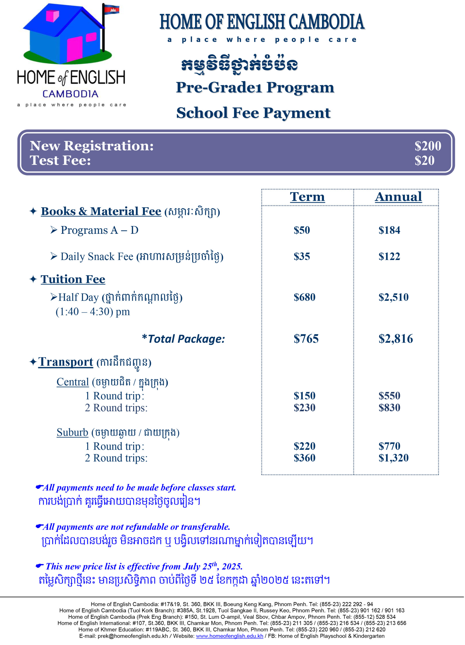 • Tuition – Khmer Program